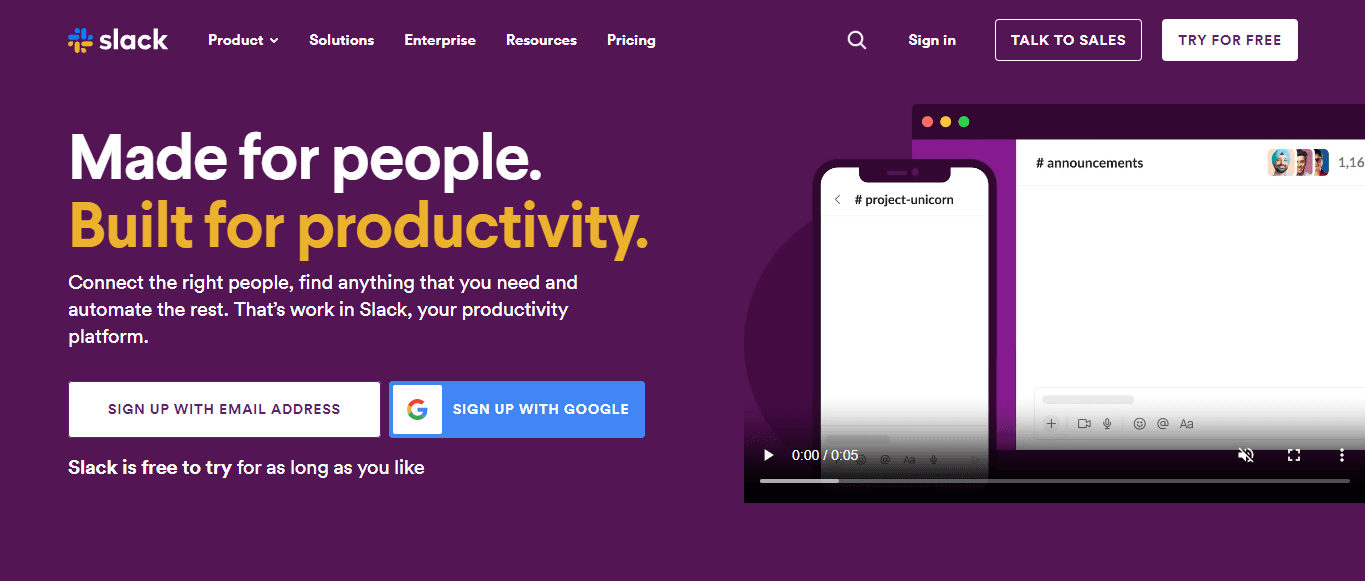 You can also connect Slack with buyer information software, such as Databox or Clearbit. Other than the sales-based functions, Slack is a communication tool that lets you have discussions, look for old messages, and give demonstrations.