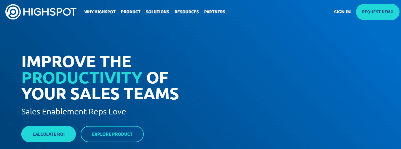 Highspot is a sales enablement software that uses AI-based search to deliver relevant content and coaching to the sales desk to help them guide customers through the stages of the sales cycle.