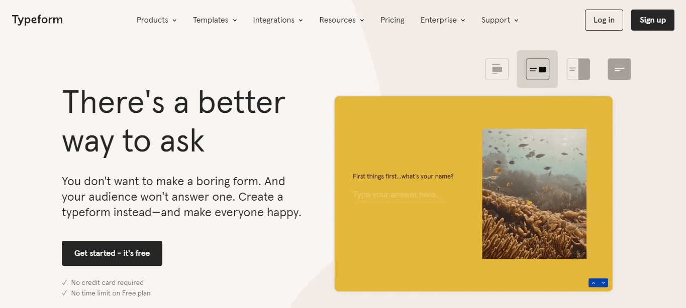 Typeform is a platform to create and design interactive forms, surveys, and quizzes to get feedback from buyers to optimize your sales process.