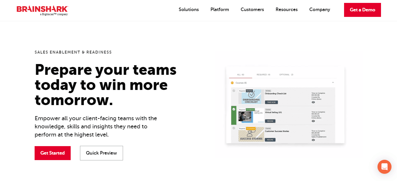 Brainshark enables you to create, share, and track visual coaching materials like videos, multimedia presentations, slideshows, and documents for sales enablement training.