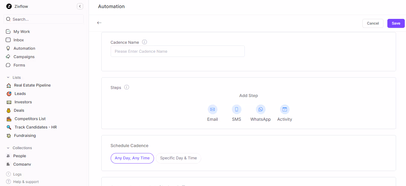 With Zixflow you can communicate with your customers across various channels including SMS, WhatsApp, and emails. In addition to this, you can manage your sales processes, automate tasks, accelerate sales cycles, and nurture your leads. It also enables you to make informed, customized decisions that cater to your customers' unique needs.