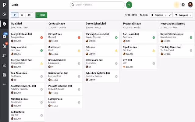 Pipedrive is a customer relationship management software built to help teams drive sales as its name suggests. It is designed to fit the needs of salespeople, sales managers, business operations, contact managers, lead managers, and project managers in a range of different industries.