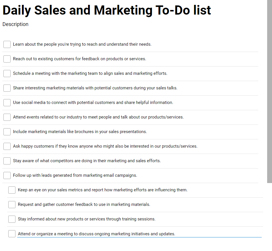 It's always important to have a road map for your sales activity; your journey needs a destination. Knowing what you want to achieve helps you organize your time effectively. You need to have a to-do list for the day, and the list should be prepared the day before.