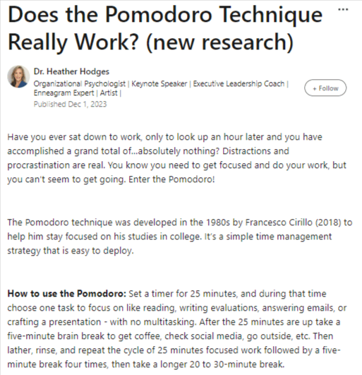 While going through Dr. Heather Hodges’s blog, I found how to use the Pomodoro technique.