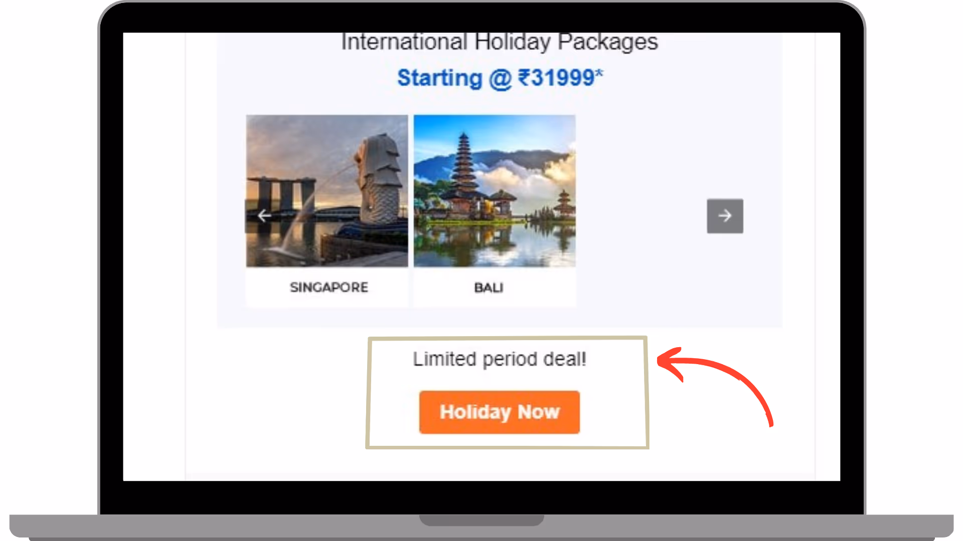 Example: ‘Best Ever Holiday Packages At Flat 45% Off’