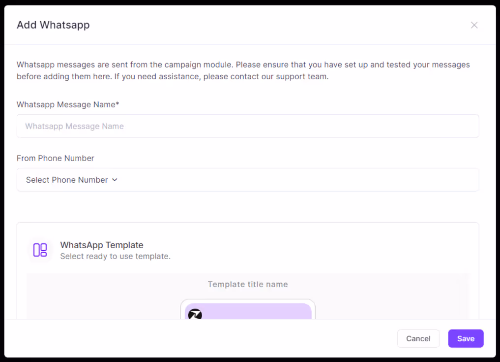 Also, with its in-built sales CRM, you can effortlessly import your audience details to the WhatsApp campaign builder. This saves time by not letting you manually select each recipient you want to include in your WhatsApp campaign.