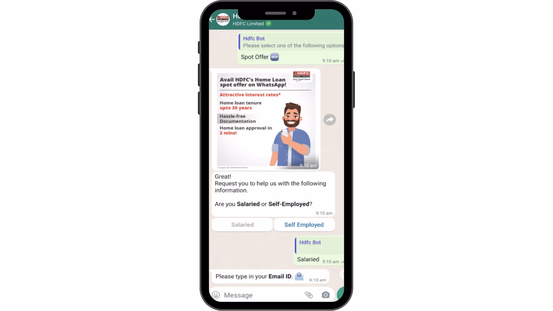 Housing Development Finance Corporation (HDFC), is an Indian banking service and housing loan provider. It wanted to deliver a “spot offer” message using the WhatsApp Business API to let its prospects find out whether they qualify for a housing loan with the series of messages.