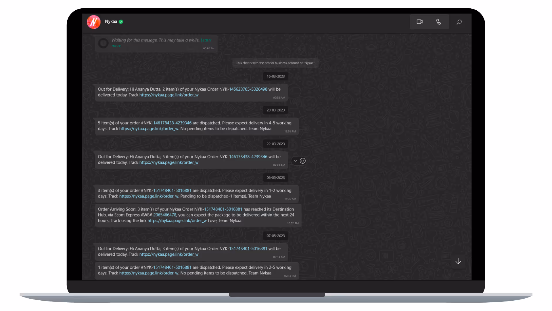 By linking with your backend systems, you can instantly confirm orders and payments on WhatsApp. When most of your users are engaged & active on WhatsApp, you don't need to be restricted to email or SMS.