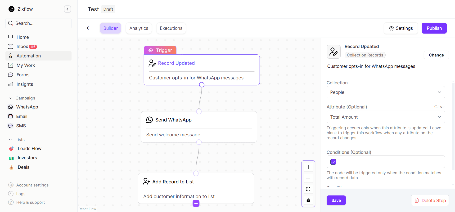 So, to make it easy for you to choose an API provider to integrate with WhatsApp, I would recommend Zixflow. It is a no-code, multi-channel marketing platform that includes CRM and automation functionalities, to connect with customers.