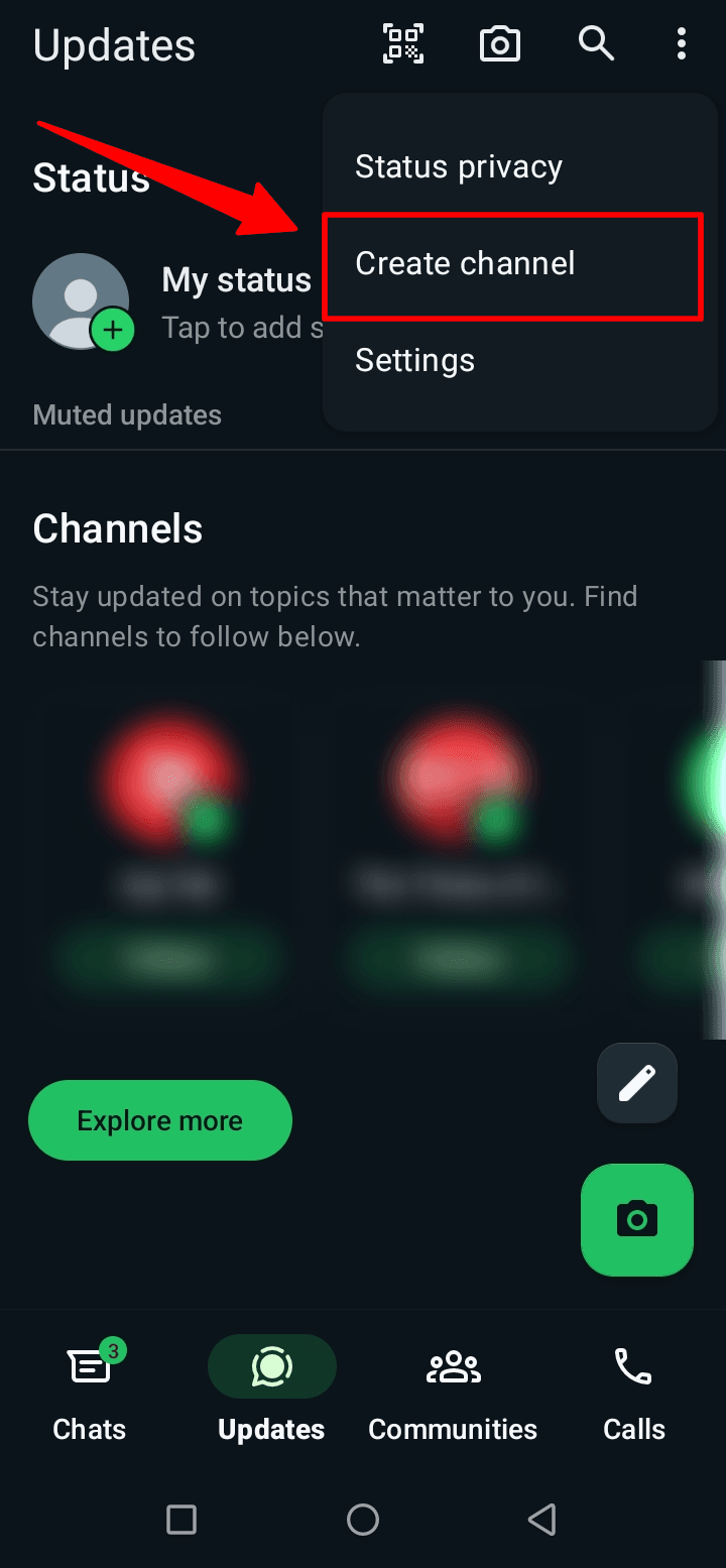 Click on the menu button at the top right corner and select the Create Channel option.