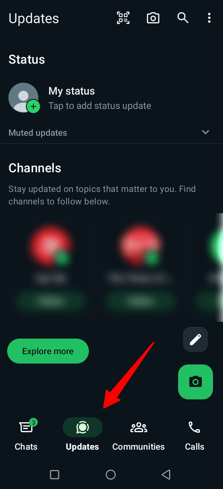 Start by downloading the WhatsApp app according to your device type, open it, and choose the Updates tab from the bar located at the bottom of the screen.