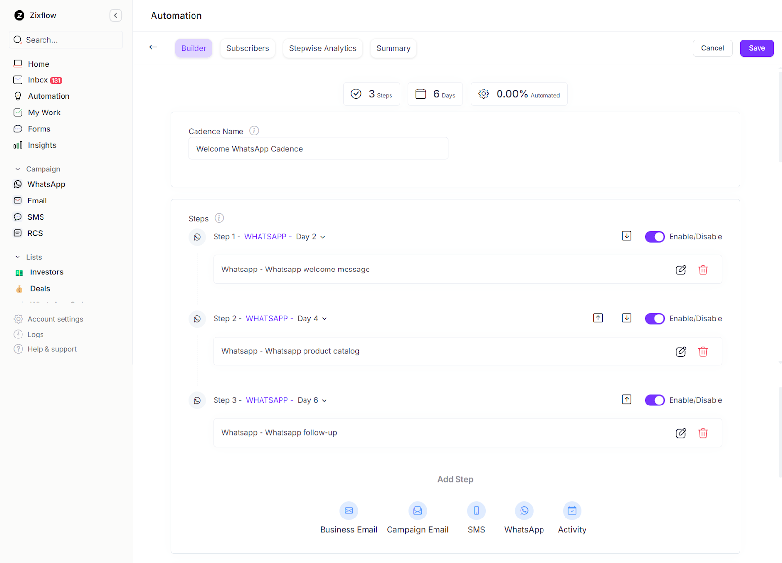 Zixflow, a robust WhatsApp tool is designed for you to optimize your marketing initiatives to stay connected with customers across the complete customer journey. Ready to kickstart your WhatsApp drip campaigns? Sign up for Zixflow today!