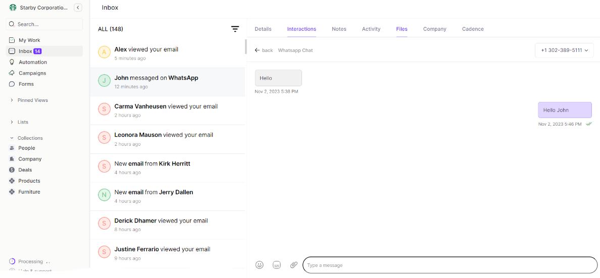 For example, say you want to integrate WhatsApp with your CRM software, and for the sake of simplicity, let’s consider Zixflow. Zixflow is a CRM, marketing, and automation solution that supports WhatsApp API integration to create a WhatsApp CRM.