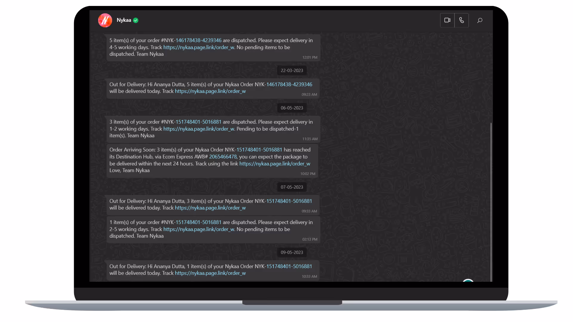 Businesses may automatically notify consumers via WhatsApp when an order is ready for delivery, giving them up-to-the-minute information on the delivery status. This can include alerts when the shipment is shipped, ready for delivery, or successfully delivered.