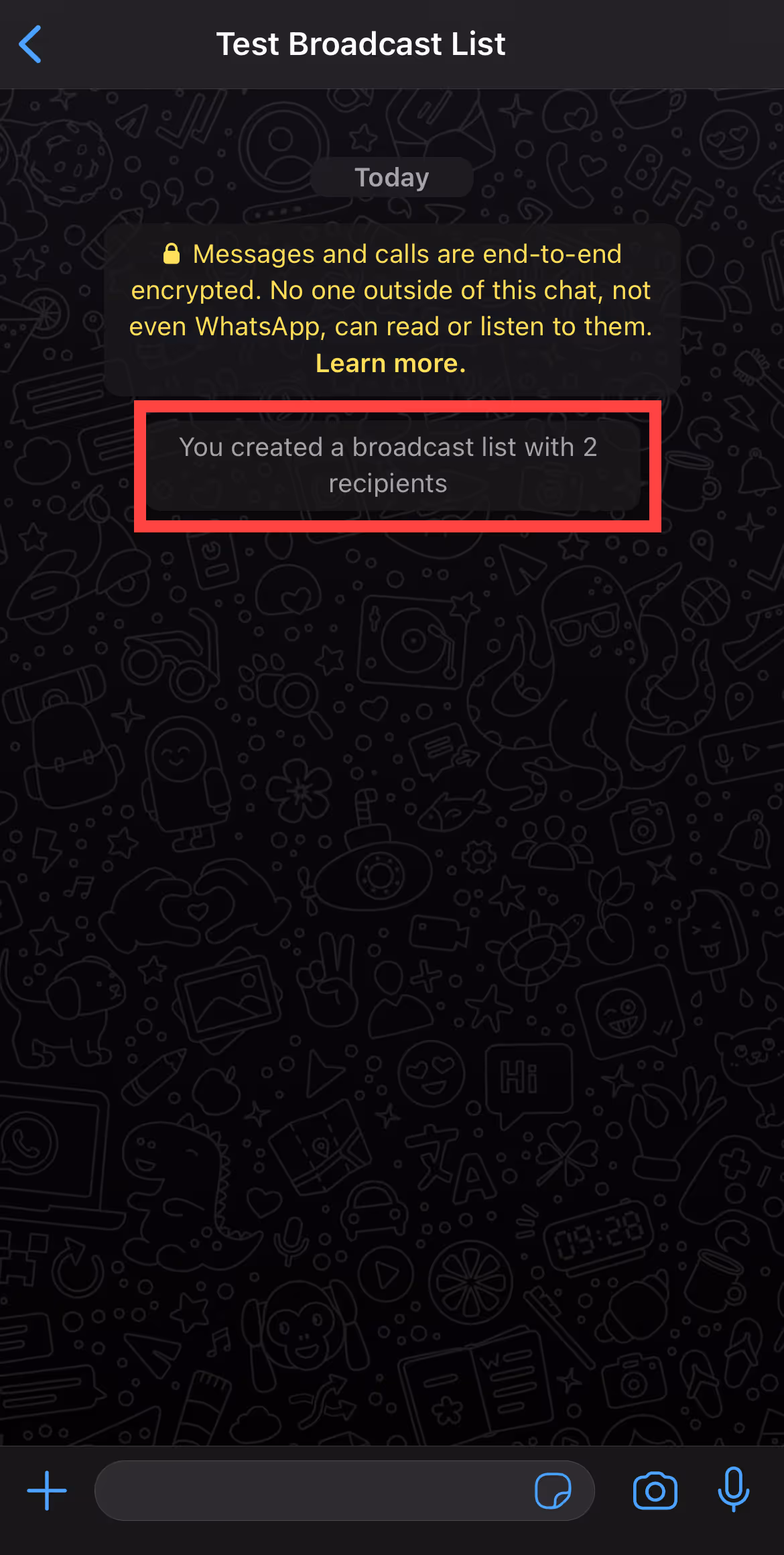 The broadcast list you created will show up in the chats and you can open it to send your WhatsApp newsletter in bulk to all the members of the list simultaneously.
