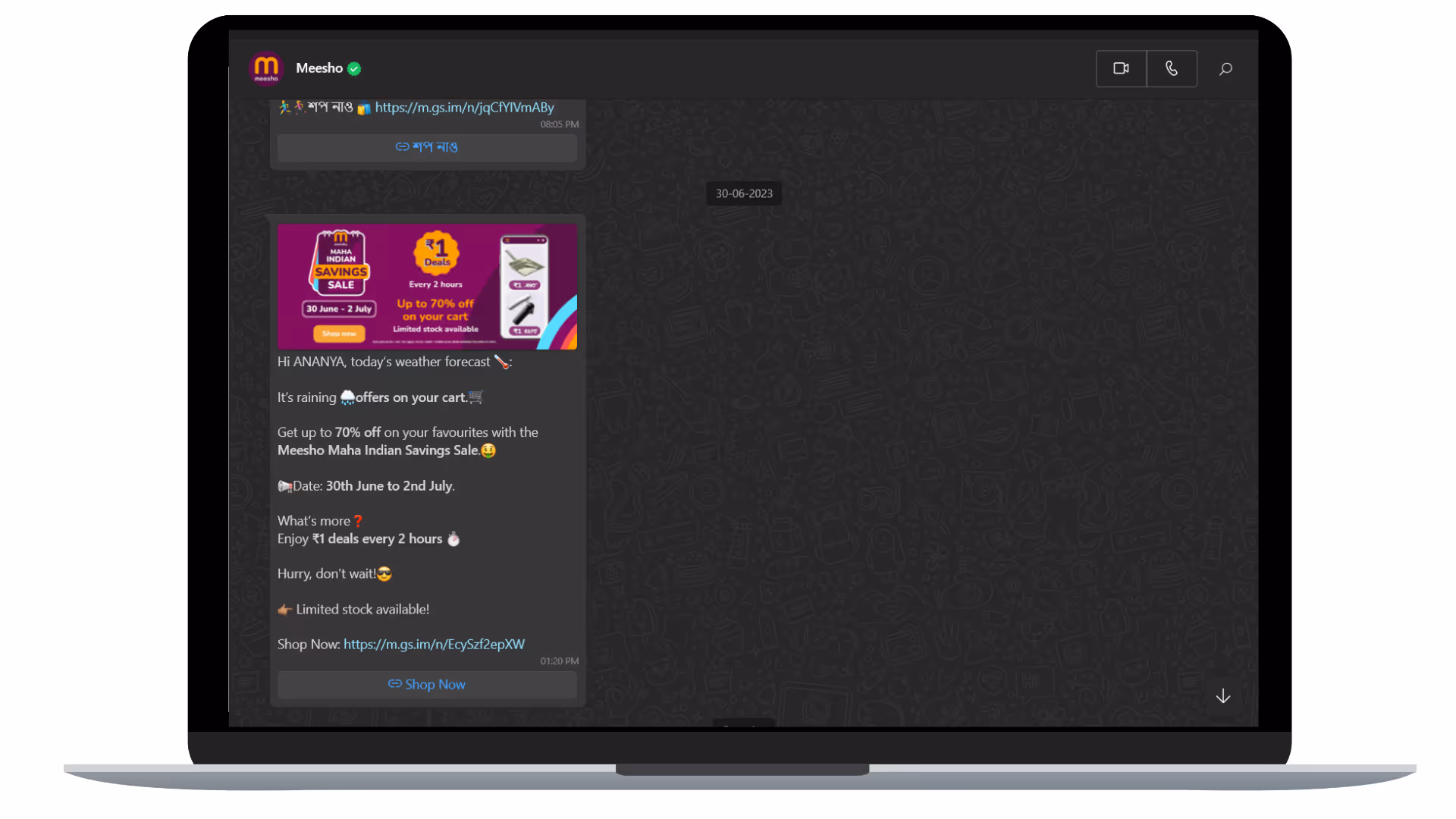 Showcase products that users have already expressed interest in by using dynamic advertisements or sending them WhatsApp catalog of your products. As a result, your messaging is more relevant and engagement is higher.