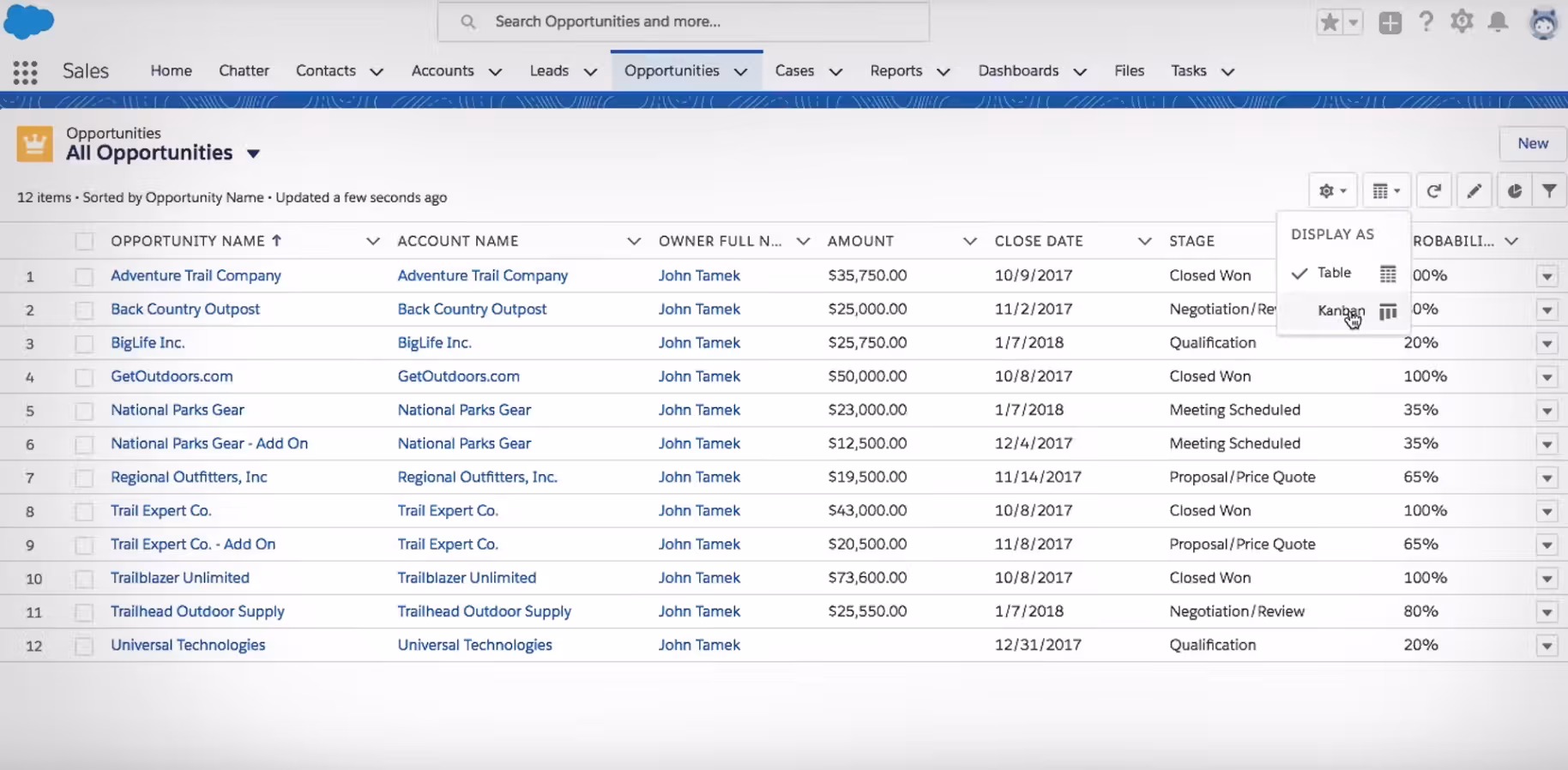 Similar to Zoho and HubSpot, Salesforce includes a one-stop shop for viewing your analytics and staying on top of each sale. With Salesforce, you can create visual analytics panels based on the updates happening in your sales funnel, projects, or ideas that you might want to implement to figure out what is the best course of action for your company.