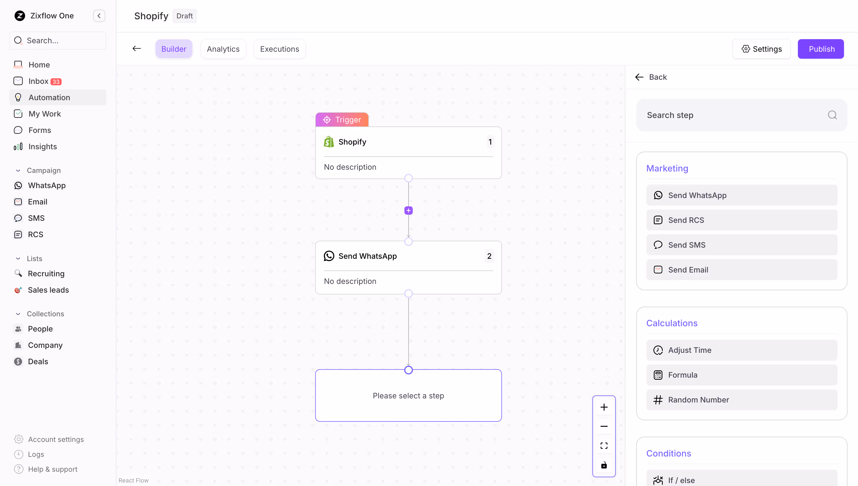 Once integrated, Shopify pushes vital information—such as customer data, purchase history, and product information—directly into Zixflow. Then, you can build robust workflows to automate processes, segment customers, and send communications through various channels.