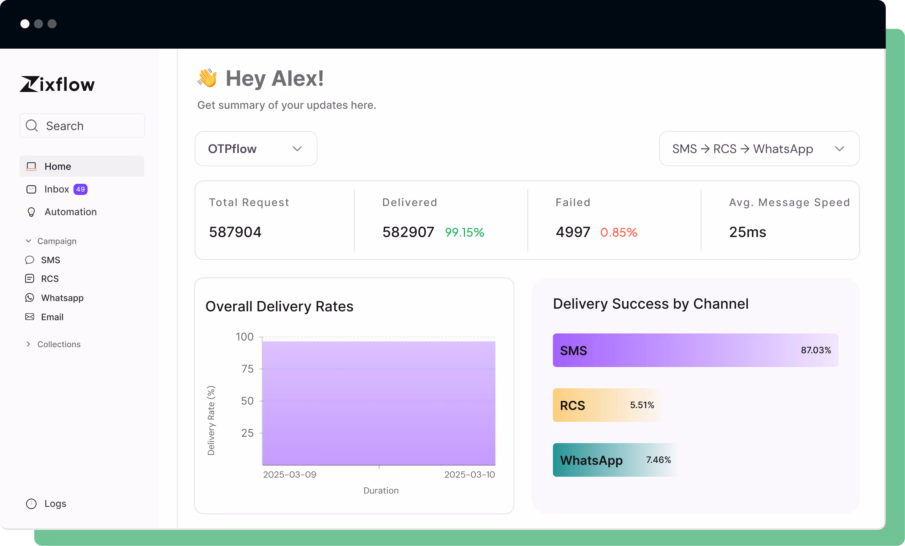 Zixflow is one of the best bulk SMS service providers in the world. Using our messaging services, you can send any kind of message to your customers, including OTP, transactional, and promotional messages to 190+ countries with a 99.99% success rate.