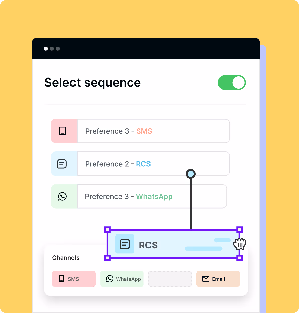 The Smart Multi-Channel API uses AI-powered real-time dynamic routing to optimize delivery across multiple channels, such as SMS, WhatsApp, and RCS. If a message fails or isn't delivered within the timeout window, it automatically switches to the next channel, ensuring reliable delivery and minimizing drop-offs.